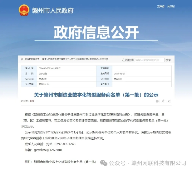 喜報!贛州網(wǎng)聯(lián)科技有限公司入選贛州市制造業(yè)數(shù)字化轉(zhuǎn)型服務(wù)商(第一批名單)!